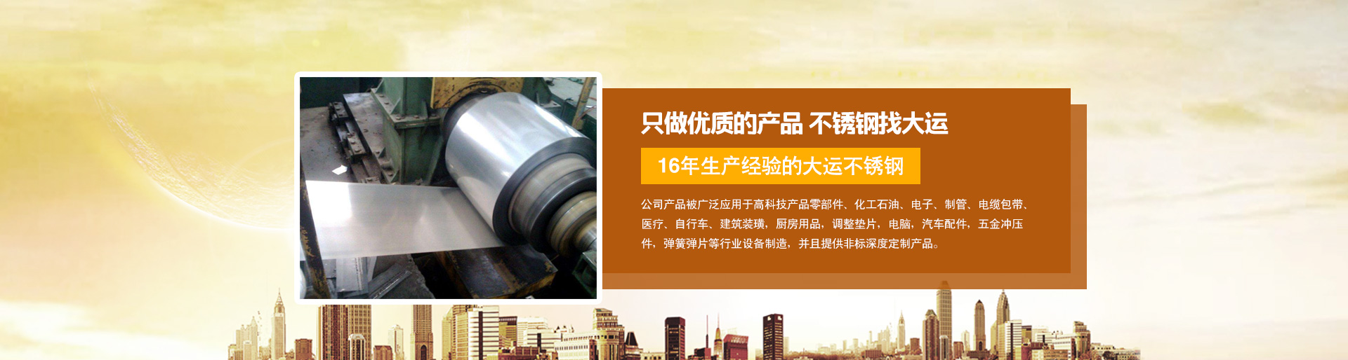無(wú)錫大運(yùn)不銹鋼有限公司,成立于2004年是一家專(zhuān)業(yè)生產(chǎn)各種優(yōu)質(zhì)合金熱處理鋼帶,不銹鋼帶、精密不銹鋼帶,積累了16年的生產(chǎn)經(jīng)驗(yàn)的生產(chǎn)企業(yè)。本公司擁有精密軋機(jī)、精密縱剪機(jī)、拉矯機(jī)、紅外測(cè)厚儀、光譜分析儀,硬度計(jì)等配套生產(chǎn)設(shè)備及質(zhì)檢設(shè)備,技術(shù)力量雄厚,生產(chǎn)設(shè)備先進(jìn),檢測(cè)設(shè)備完善,產(chǎn)品規(guī)格齊全,是國(guó)內(nèi)率先擁有自主研發(fā)用于生產(chǎn)不銹鋼帶所需要的各項(xiàng)設(shè)備,并經(jīng)過(guò)多次技術(shù)升級(jí)換代,擁有核心的生產(chǎn)技術(shù)專(zhuān)利。 公司產(chǎn)品被廣泛應(yīng)用于高科技產(chǎn)品零部件、化工石油、電子、制管、電纜包帶、醫(yī)療、自行車(chē)、建筑裝璜,廚房用品,調(diào)整墊片,電腦,汽車(chē)配件,五金沖壓件,彈簧彈片等行業(yè)設(shè)備制造,并且提供非標(biāo)深度定制產(chǎn)··· |